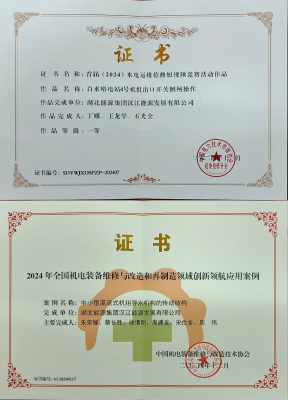 漢江能源公司在水電行業競賽中榮獲兩項佳績
