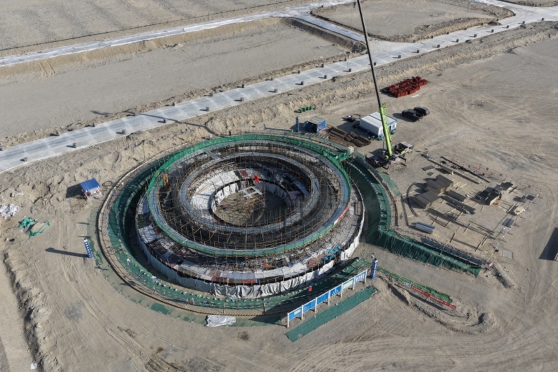 修通15.7公里道路、平整167.35萬方場地、澆筑4.2萬方混凝土、架起13.5公里廠區臨時用電線路、敷設5.4公里廠區管道、壘砌5.5公里圍墻,主廠房全面開工建設,間冷塔和煙囪基礎完成開挖……如今,4平方公里的戈壁灘上,近百臺挖掘機、渣土車、起重機等各類機械作業繁忙、機器轟鳴,超千名建設人員穿梭其中,一派如火如荼的景象。